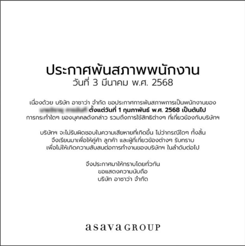เรียกได้ว่า แฟนๆต่างสงสัยว่าเกิดอะไรขึ้น เมื่อทาง หมู อาซาว่า หรือ พลพัฒน์ อัศวะประภา ออกมาประกาศครั้งสำคัญของแบรนด์ ได้ประกาศพ้นสภาพพนักงาน ของพนักงานรายหนึ่ง ตั้งแต่วันที่ 1 กุมภาพันธ์ โดยได้โพสต์ว่า
