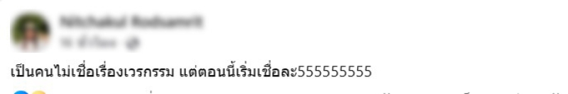 ก่อนจะโพสต์อีกว่า “เป็นคนไม่เชื่อเรื่องเวรกรรม แต่ตอนนี้เริ่มเชื่อละ555555555”