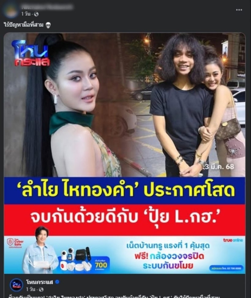 ลำไย ไหทองคำ ออกมาเคลียร์ประเด็นเลิกรากับ ปุ้ย L.กฮ. ว่าเป็นเพียงปัญหาจุกจิกเล็กน้อย ไม่เกี่ยวกับมือที่สาม และตอนนี้ทั้งคู่คืนดีกันแล้ว อย่างไรก็ตาม เธอยอมรับว่าเคยคุยกับบอส แดนเซอร์ชายจริง โดยไม่รู้ว่าอีกฝ่ายยังไม่เลิกกับแฟนสาว ก่อนที่ทางค่ายจะจ่ายเงินให้แฟนสาวของบอส 2 ล้านบาท หลังถูกเรียกค่าเสียหาย 10 ล้าน และแยกย้ายกันไปโดยไม่มีข้อโต้แย้ง