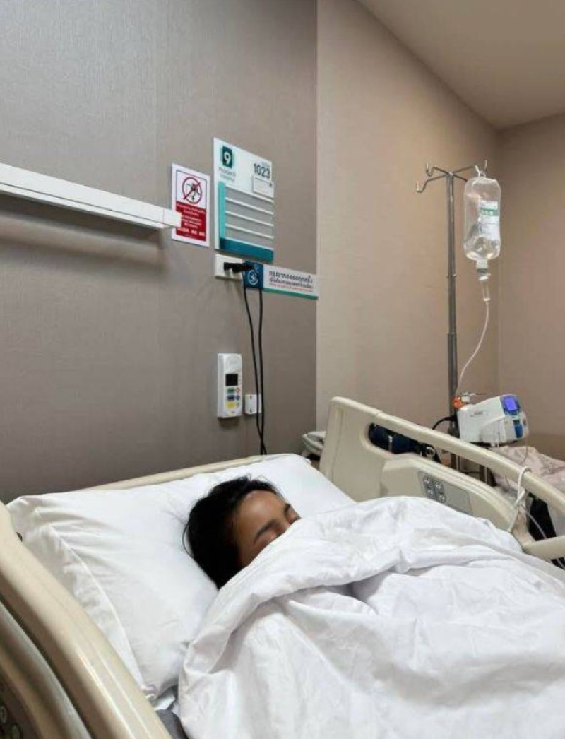 และอีกโพสตืได้เผยรูปพร้อมระบุข้อความว่า ป่วย…Admit คืนที่สองแล้ว วันนี้ก็ร้องกลับ กลัวทำงานสปอร์นไม่ทัน กลัวซ้อมไม่ทัน สงสารมาก…หายป่วยไวๆนะลูกสาว อาม ชุติมา