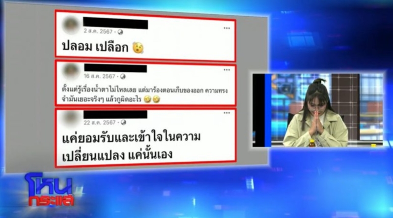 โดยโม ได้พูดถึงนายห้างประจักษ์ชัย ในช่วงท้ายรายการ บอกว่า "ถ้าอาจารย์จะฟ้องก็อาจารย์มีสิทธิ์ฟ้องได้ แต่หนูก็ยังยืนยันว่า หนูไม่ได้เป็นคนปล่อยหลักฐานนั้นค่ะ คนรอบข้างหนูไม่มีคนปล่อยค่ะ แต่ว่าในส่วนของเฟสบุ๊ก ที่อาจารย์อจจะเห็นที่หนูโพสต์ คือตอนนั้น เฟซบุ๊กหนูมันเป็นเฟซบุ๊กส่วนตัว ไม่มีใครเห็นนอกจากครอบครัวหนู เช่นโพสต์ว่า ปลอมเปลือก แต่ว่ามีอะไรแบบนี้หลายอัน พอมีประเด็นเกิดขึ้นมา คนเอาโยงกัน หนูไม่สบายใจในส่วนตรงนี้ หนูอยากขอโทษอาจารย์"