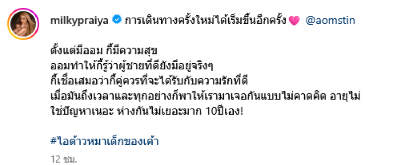 การเดินทางครั้งใหม่ได้เริ่มขึ้นอีกครั้ง @aomstin ตั้งแต่มีออม กี้มีความสุข ออมทำให้กี้รู้ว่าผู้ชายที่ดียังมีอยู่จริงๆ กี้เชื่อเสมอว่ากี้คู่ควรที่จะได้รับกับความรักที่ดี เมื่อมันถึงเวลาและทุกอย่างก็พาให้เรามาเจอกันแบบไม่คาดคิด อายุไม่ใช่ปัญหาเนอะ ห่างกันไม่เยอะมาก 10 ปีเอง