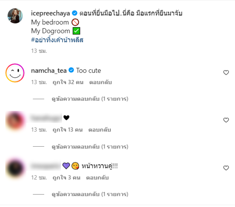 ล่าสุด ไอซ์ ได้โพสต์ภาพกับน้องหมา พร้อมแคปชั่น ตอนที่ยื่นมือไป..นี่คือ มือแรกที่ยืนมาจับ My bedroom My Dogroom #อย่าทิ้งเค้าน้าพลีส