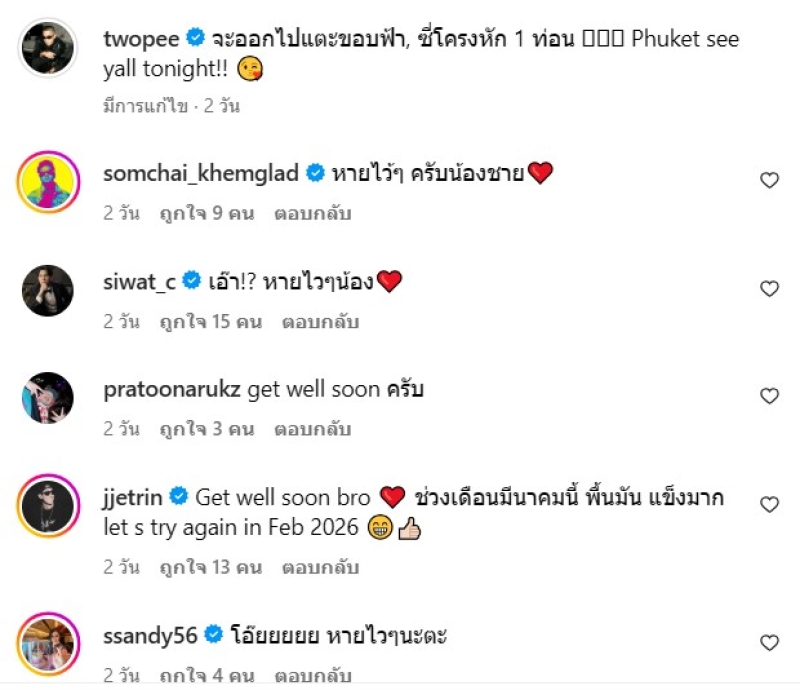 งานนี้ ด้านเพื่อนๆในวงการบันเทิง เข่้ามาแสดงความห่วงใยกันจำนวนมาก
