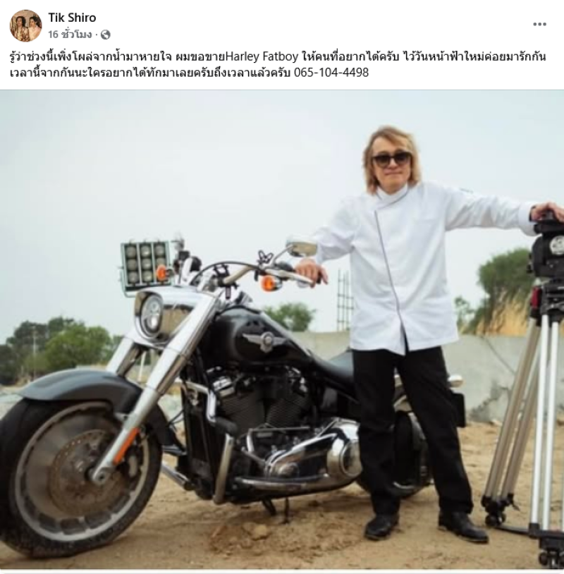 พร้อมเขียนข้อความว่า รู้ว่าช่วงนี้เพิ่งโผล่จากน้ำมาหายใจ ผมขอขาย Harley Fatboy ให้คนที่อยากได้ครับ ไว้วันหน้าฟ้าใหม่ค่อยมารักกัน เวลานี้จากกันนะ ใครอยากได้ทักมาเลยครับ ถึงเวลาแล้วครับ ท่ามกลางแฟนๆต่างเข้ามาคอมเมนต์ส่งกำลังใจกันอย่างมาก
