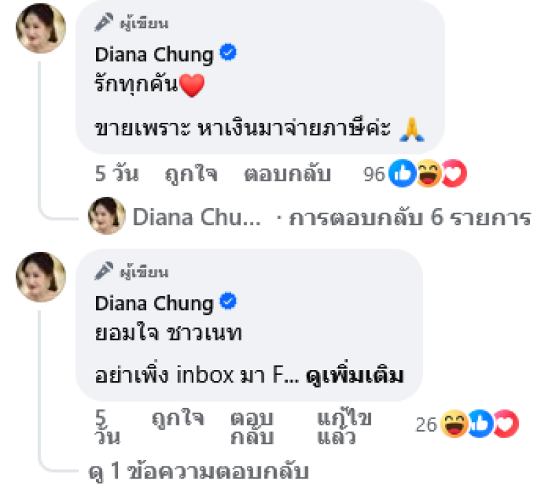 ทั้งนี้ยังได้คอมเมนต์ใต้โพสต์อีกว่า รักทุกคันขายเพราะ หาเงินมาจ่ายภาษีค่ะ , ยอมใจ ชาวเน็ตอย่าเพิ่ง inbox มา Fยังไม่ประกาศราคาเลย