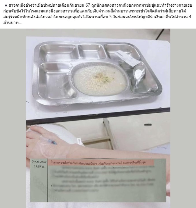 ยเรียกได้ว่า มีเรื่องต้องให้สืบกันแต่เช้า เมื่อเช้าวันนี้ 19 มี.ค. 68 ทางเพจดัง อย่าง อีซ้อขยี้ข่าว : อีซ้อ ได้ออกมาเปิดข้อมูลแบบวงในว่า สาวคนนึงอ้างว่าเมื่อช่วงปลายเดือนกันยายน 67 ถูกนักแสดงสาวคนนึงยกพวกมาข่มขู่และทำร้าeร่างกายเธอก่อนจับขังไว้ในโรงแรมแห่งนึง แถวสาทรเพื่อแลกกับเงินจำนวน สี่ล้านบาท เพราะเข้าใจผิดคิดว่าผู้เสียหายได้สมรู้ร่วมคิดหักหลังฉ้อโกงเค้าโดยเธอถูกคุมตัวไว้ในนานเกือบ 5 วันก่อนจะโทรให้ญาตินำเงินมาคืนให้จำนวน 4 ล้านบาท