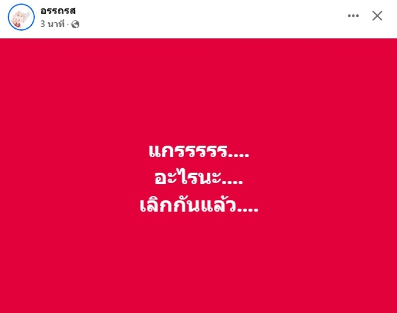 ขณะเดียวกัน เพจ อรรถรส ก็ออกมาโพสต์ข้อความในทำนองเดียวกันว่า แกรรรรร.... อะไรนะ.... เลิกกันแล้ว