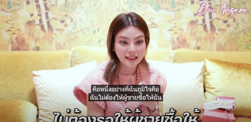 ซึ่งหากย้อนกลับไปเมื่อช่วง 3 ปีก่อน ด้านสาวดิว ได้เคยออกมาทำคลิป พร้อมเผยถึงมุมมองเกี่ยวกับการช็อปปิ้งของแบรนด์เนม ในทำนองว่า ทั้งหมดนี้ ตนไม่ได้ ได้มาอย่างง่ายดาย แต่ได้มาจากความเหน็ดเหนื่อยของเรา ก่อนกล่าวเสริมว่า ก่อนที่เราจะมีอะไรแบบนี้ ต้องชัวร์ก่อนว่า พ่อแม่สบายดี หรือเรามีอะไรติดค้างไหม ไม่ใช่ซื้อของแล้วติดเงินชาวบ้านเข้าก็ไม่ได้นะ พร้อมกล่าวปิดท้ายว่า อย่างหนึ่งที่ฉันภูมิใจ คือฉันไม่ต้องรอให้ผู้ชายซื้อให้ฉัน ฉันได้มันมาด้วยความสามารถของฉันเอง