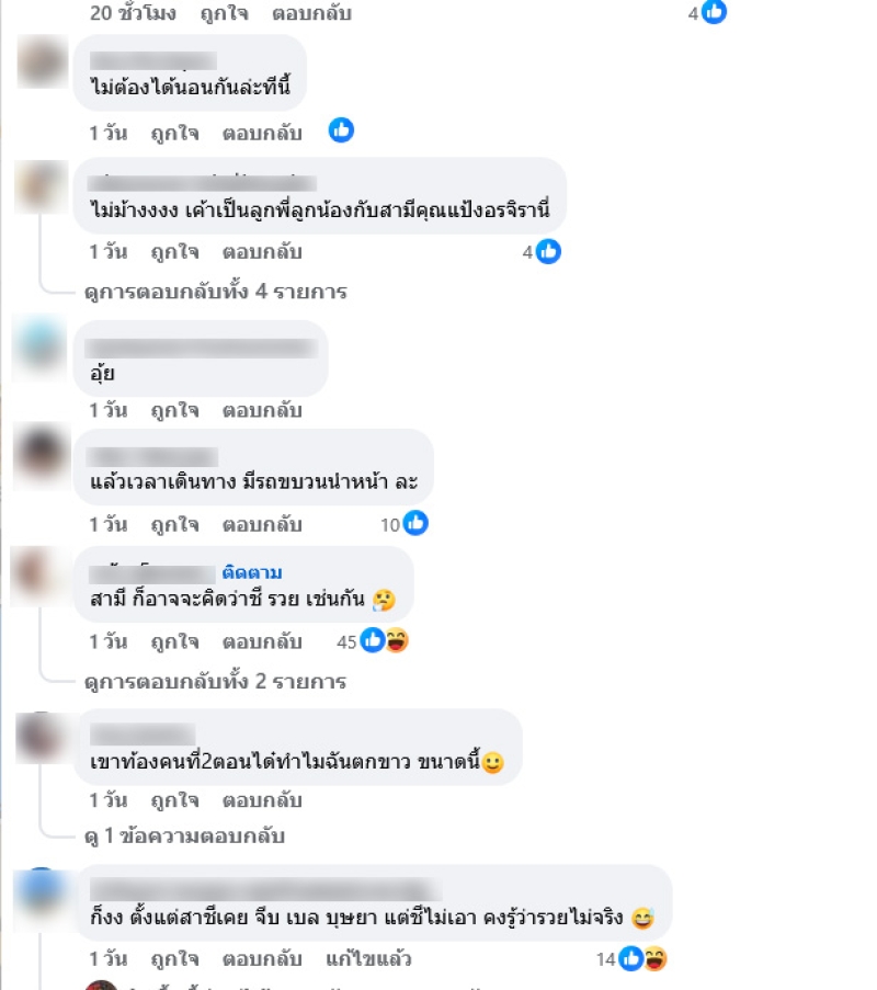 ท่ามกลางชาวเน็ตต่างเข้ามาคอมเมนต์กันอย่างมาก อาทิ ทีนี้จะหาเงินที่ไหนมาคืนเค้าเนี่ย แล้วลูกอีก 2 คน แถมเลี้ยงแบบหรูซะด้วย,ไม่ต้องได้นอนกันล่ะทีนี้,สามี ก็อาจจะคิดว่าชี รวย เช่นกัน,เขาท้องคนที่2ตอนได๋ทำไมฉันตกขาว ขนาดนี้,ก็งง ตั้งแต่สาชีเคย จีบ เบล บุษยา แต่ชีไม่เอา คงรู้ว่ารวยไม่จริง เป็นต้น