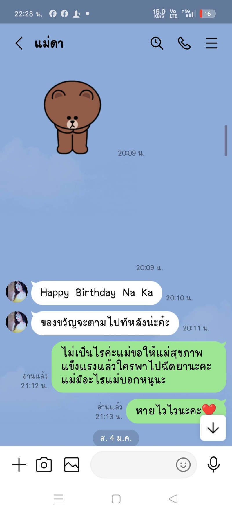 พร้อมเขียนข้อความว่า พรุ่งนี้หนูไปรับแม่นะแม่จะได้เจออ๊อฟแล้ว อ๊อฟต้องดูแลแม่ให้ดีนะ ขอโทษที่หนูดูแลแม่ได้เเค่นี้จริงๆ ..หนูรักแม่นะคะ สำหรับแชทสุดท้ายที่ต่ายได้คุยกับแม่สีดาคือ ทั้งคู่ได้ส่งของขวัญและอวยพรเรื่องสุขภาพร่างกายให้แม่สีดาเเข็งแรง ท่ามกลางแฟนๆต่างแสดงความเสียใจกันอย่างมาก