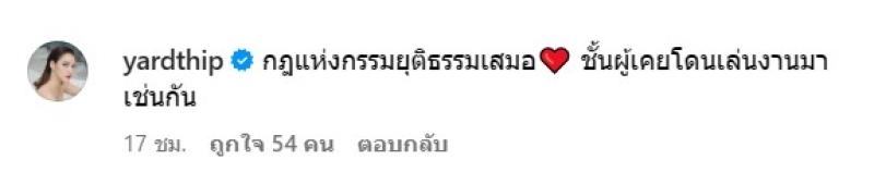 งานนี้ ด้านคนในวงการบันเทิง เข้ามาคอมเมนต์เพียบ ด้าน หยาดทิพย์ ราชปาล เข้ามาคอมเมนต์ทันทีว่า กฎแห่งกรรมยุติธรรมเสมอ ชั้นผู้เคยโดนเล่นงานมาเช่นกัน งานนี้ทำเอาชาวเน็ตจับตาว่า ด้านหยาดกับดิว เคยมีประเด็นอะไรกันมาก่อนไหมนะเพียบ