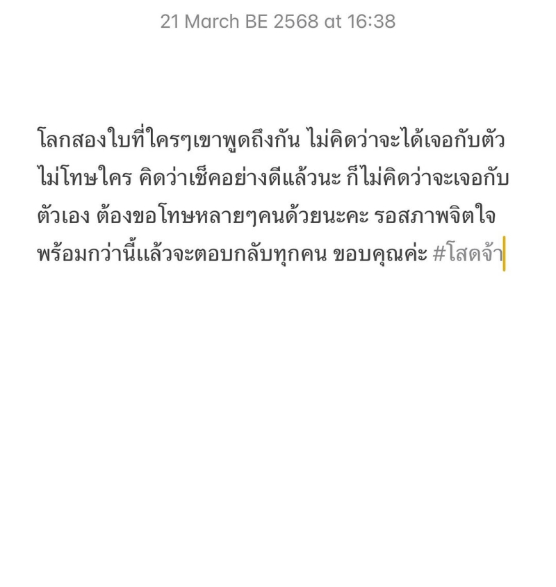 ซึ่งในเวลาต่อมา ด้านสาวคะน้า ได้ออกมาเคลื่อนไหวอีกครั้ง พร้อมโพสต์ประกาศสถานะว่าโสดอีกครั้ง ก่อนเผยถึงสาเหตุว่า เจอเรื่องโลกสองใบแบบไม่คาดคิดและสภาพจิตใจที่ยังไม่พร้อมพูด โดยสาวเจ้าตัวได้ระบุถึงปัญหาเอาไว้คร่าวๆว่า โลกสองใบที่ใครๆเขาพูดถึงกัน ไม่คิดว่าจะได้เจอกับตัวเอง ไม่โทษใคร คิดว่าเช็คทุกอย่างดีแล้ว ไม่คิดว่าเจอกับตัวเอง ต้องขอโทษหลายๆคนด้วยนะคะ รอสภาพจิตใจพร้อมแล้วจะกลับมาตอบทุกคน ขอบคุณค่ะ งานนี้ทำเอาแฟนๆต่างรุดส่งกำลังใจให้สาวเจ้าตัวกันรัวๆ พร้อมขอให้เธอผ่านช่วงเวลานี้ไปได้ด้วยดี