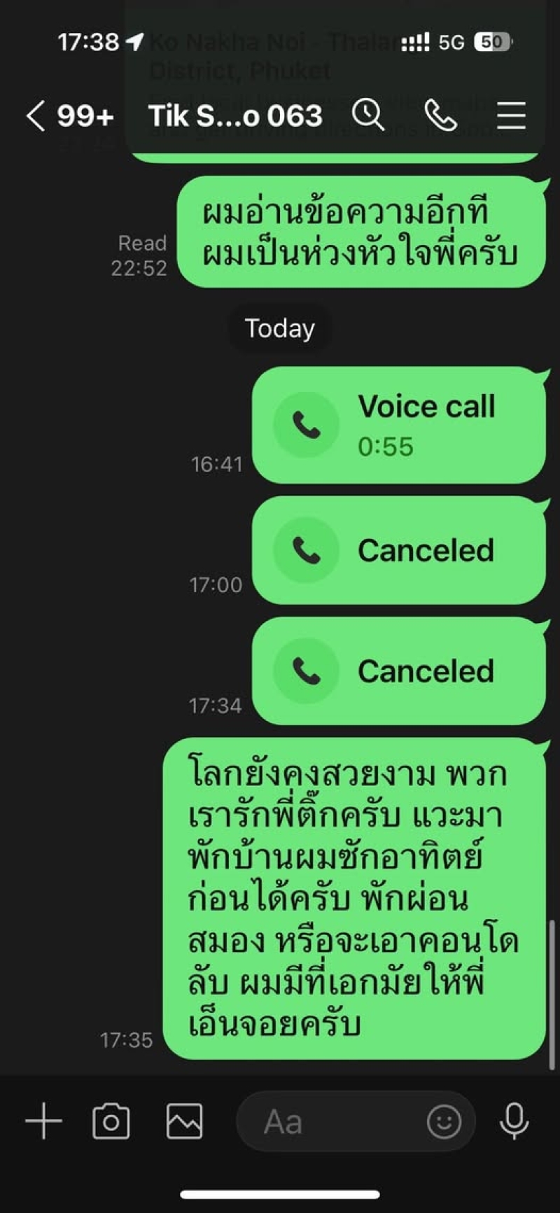 น้ำเสียงไม่ค่อยดี และน่าห่วงครับ โดยส่วนตัวแกเคยส่งสัญญาณกับผมแล้ว 1 ครั้งหลังวันจบคอนเสิร์ต ผมบอกบางท่านที่พอปรึกษาเรื่องนี้กันได้ และไม่สบายใจมาตลอด ชีวิตศิลปินผู้ยิ่งใหญ่ในวัยนี้ไม่ง่าย เพราะผ่านร้อน ผ่านแดดแผดเผาผิวให้เป็นที่ต้องระคายเคืองมาเป็นระยะ หลักๆ คือเครียด น้ำเสียงไม่ค่อยดี และดูยังไม่ค่อยมีสมาธินักตอนคุยกับผม ส่วนรายละเอียดอื่นๆ ขอให้เป็นการเปิดเผยตามเวลาครับ