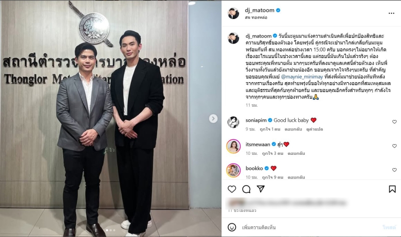 ล่าสุด ดีเจมะตูม ได้เข้าไปแจ้งความแล้ว โดยบอกว่า วันนี้มะตูมมาแจ้งความดำเนินคดีเพื่อปกป้องสิทธิและความบริสุทธิ์ของตัวเอง โดยพรุ่งนี้ คู่กรณีจะเข้ามาไกล่เกลี่ยกับมะตูมพร้อมกันที่ สน.ทองหล่อช่วงเวลา 15:00 ครับ บอกตรงๆไม่อยากให้เกิดเรื่องอะไรแบบนี้ในช่วงเวลานี้เลย แต่รอบนี้มันเกินไปแล้วจริงๆ ต้องขอบพระคุณพี่ทนายตั้ม มากๆนะครับที่ลงมาดูแลเคสนี้ด้วยตัวเอง เห็นพี่วิ่งงานทั้งวันแล้วยังมาช่วยน้องอีก ขอบคุณจากใจจริงๆนะครับ ที่สำคัญขอขอบคุณพี่เมย์ @maynie_minimay ที่ส่งพี่ต้้มมาช่วยน้องทันทีหลังจากทราบเรื่องครับ สุดท้ายพรุ่งนี้ขอให้ทุกอย่างมีทางออกที่สมเหตุสมผลและยุติธรรมที่สุดกับทุกฝ่ายครับ และขอบคุณอีกครั้งสำหรับทุกๆ กำลังใจ จากทุกๆคนและทุกๆช่องทางครับ