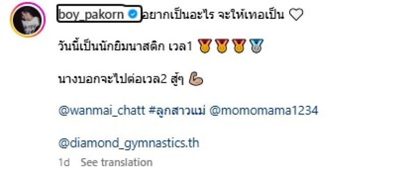 อยากเป็นอะไร จะให้เธอเป็น วันนี้เป็นนักยิมนาสติก เวล 1 นางบอกว่าจะไปต่อเวล 2 สู้ๆ โดยการแข่งขันในครั้งนี้ ด้านน้องวันใหม่ สามารถคว้ารางวัลมาได้ถึง 4 เหรียญกันเลยทีเดียว ซึ่งมี 3 เหรียญทองและอีกหนึ่งเหรียญเงิน ทำเอาเหล่าพี่ๆชาวเน็ต ต่างพากันมาร่วมแสดงความยินดีกับน้องวันใหม่เป็นจำนวนมากเลยทีเดียว อาทิ เก่งมากวันใหม่ บ้างก็บอกว่า ถูกรักอย่างดีจากพี่ๆสุดหล่อในบ้าน เอ็นดู วันใหม่โตแล้วหนา เป็นต้น