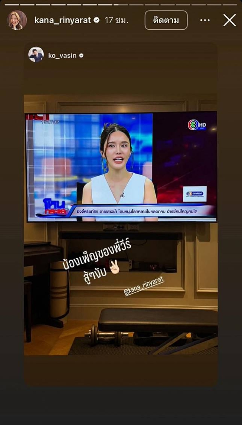 ทั้งนี้ทางด้านพระเอกหนุ่ม โก้ วศิน อัศวนฤนาท ที่เคยมีโอกาสร่วมงานกันในละคร ขิงก็รา ข่าก็แรง โดย โก้ ก็ได้ออกมาเผยภาพที่ถ่ายจากรายการโหนกระแส ผ่านสตอรี่อินสตาแกรม ko_vasin พร้อมข้อความว่า น้องเพ็ญของพี่วัร์ สู้ๆงับ