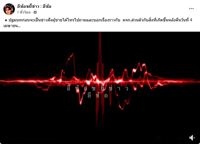 จากกรณีที่มีการปล่อยเสียงในกล้องหน้ารถของ สาวพริตตี้ และโตโน่ ล่าสุดทางด้านเพจเฟซบุ๊ค อีซ้อขยี้ข่าว : อีซ้อ ได้ออกมาเผยคลิปเสียงที่แฟนหนนุ่มของสาวคนดังกล่าวได้โทรหาผู้จัดการของ โตโน่ พร้อมเขียนแคปชั่นว่า ปฐมบทก่อนจะเป็นข่าวฝั่งผู้ชายได้โทรไปถามและบอกเรื่องราวกับ ผจก.ส่วนตัวกับสิ่งที่เกิดขึ้นหลังคืนวันที่ 4 เมษายน