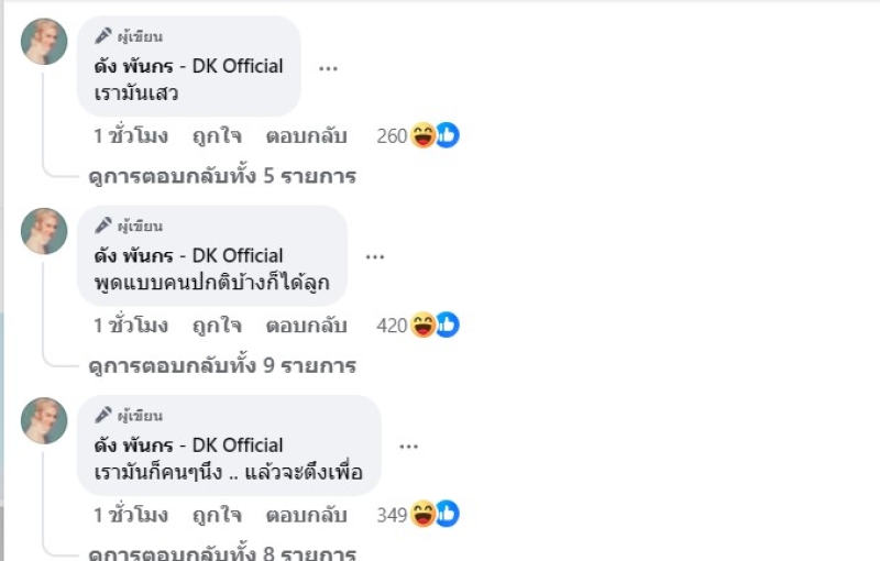 เรียกได้ว่า ถูกใจชาวเน็ตแรงมาก เมื่อ ดัง พันกร ได้โพสต์ผ่าน facebook ส่วนตัว โดยได้เผยว่า หลวงประดิษฐ์ ติดแอ็ค และยังได้คอมเมนต์ใต้โพสต์ตัวเองด้วยว่า พูดแบบคนปกติบ้างก็ได้ลูก,เรามันก็คนๆนึง .. แล้วจะตึงเพื่อ,เรามันเสว