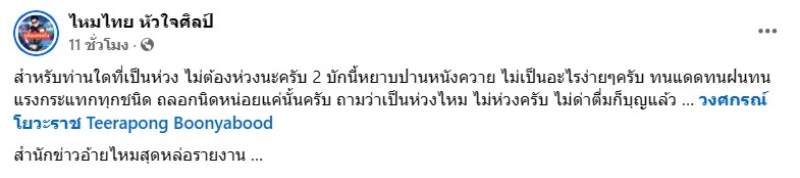 และทาง ไหมไทย หัวใจศิลป์ ก็ได้แจ้งว่า สำหรับท่านใดที่เป็นห่วง ไม่ต้องห่วงนะครับ 2 บักนี้หยาบปานหนังควาย ไม่เป็นอะไรง่ายๆครับ ทนแดดทนฝนทนแรงกระแทกทุกชนิด ถลอกนิดหน่อยแค่นั้นครับ ถามว่าเป็นห่วงไหม ไม่ห่วงครับ ไม่ด่าตื่มก็บุญแล้ว วงศกรณ์ โยวะราช Teerapong Boonyabood สำนักข่าวอ้ายไหมสุดหล่อรายงาน