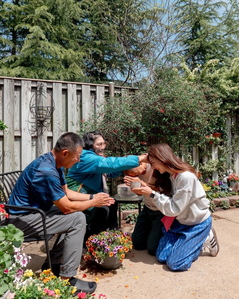 ปีนี้พี่หมีก็ไม่พลาด ที่จะรดน้ำกราบภรรยา พร้อมน้อมรับพรน่ารักๆของสาวแพนเค้กด้วย โดยสาวเจ้าตัวได้อวยพรให้สามีว่า ขอให้เป็นเด็กดีนะ มีสติ ใจเย็นๆนะคะ งานนี้ทำเอาคุณแม่สาวแพนเค้ก อย่าง แม่แพม ก็รีบเสริมทัพด้วยการปล่อยมุกสุดฮาตอบกลับทันควันเลยว่า มีสติแล้วก็ต้องมีสตางค์ด้วย ทำเอาแฟนๆรีบแห่แซวกันสนั่นโซเชียลกันเลยว่า เป็นโมเมนต์ที่ทั้งอบอุ่นและฮาแถมยังสร้างรอยยิ้มได้เป็นอย่างมากเลยทีเดียว
