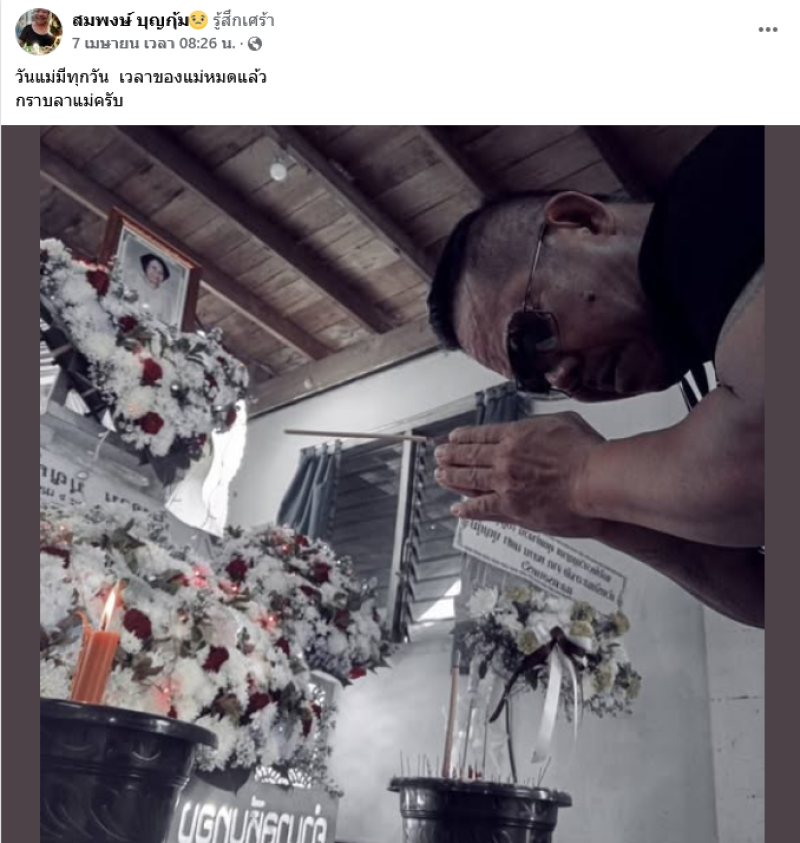 ทั้งนี้ทางด้านเฟซบุ๊คของ อาฉี สมพงษ์ บุญกุ้ม เพิ่งได้สูญเสียคุณแม่ไปเมื่อวันที่ 7 เมษายน 2568 ที่ผ่านมา โดยเขียนโพสต์ว่า วันแม่มีทุกวัน เวลาของแม่หมดแล้ว กราบลาแม่ครับ