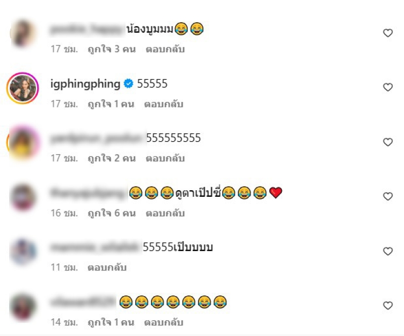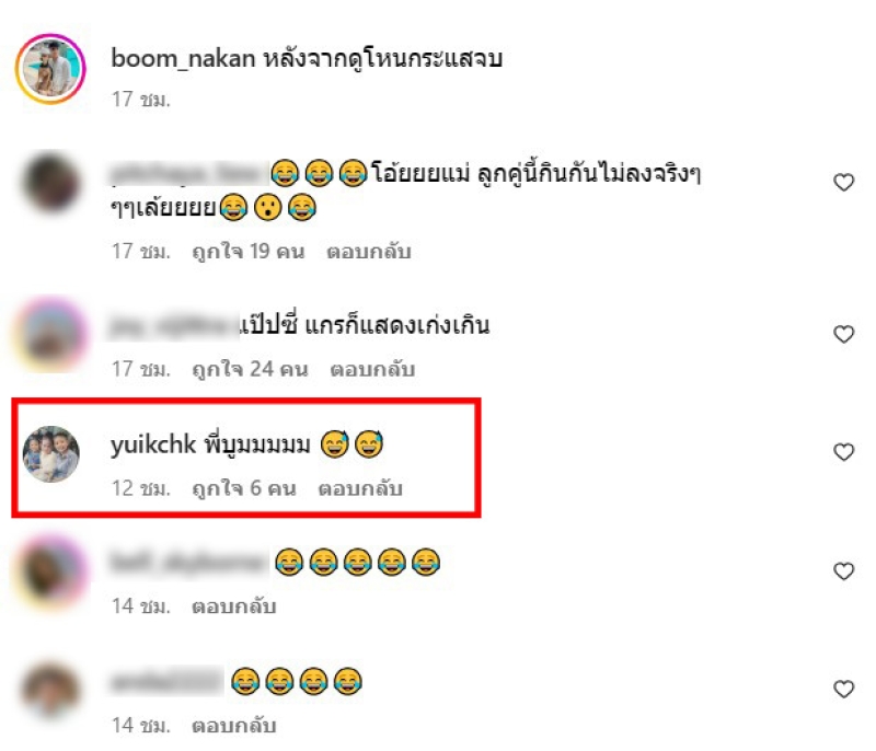 งานนี้ แม่ยุ้ย แม่ของนางเอกสาว ณิชา จะโผล่เข้ามาคอมเมนต์ว่า พี่บูมมมมม (พร้อมอีโมจิยิ้มเหงื่อตก) และนังมีอีกหลายๆคนก็เข้ามาคอมเมนต์เช่นกัน