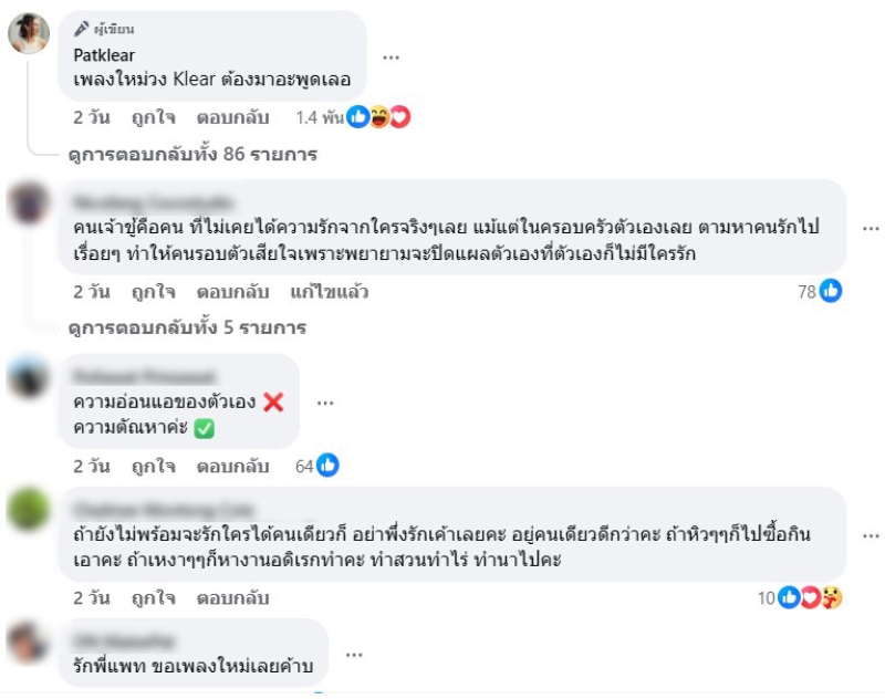 และได้คอมเมนต์ใต้โพสต์อีกว่า เพลงใหม่วง Klear ต้องมาอะพูดเลอ