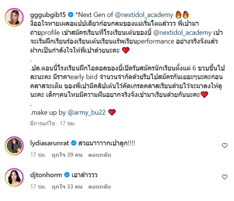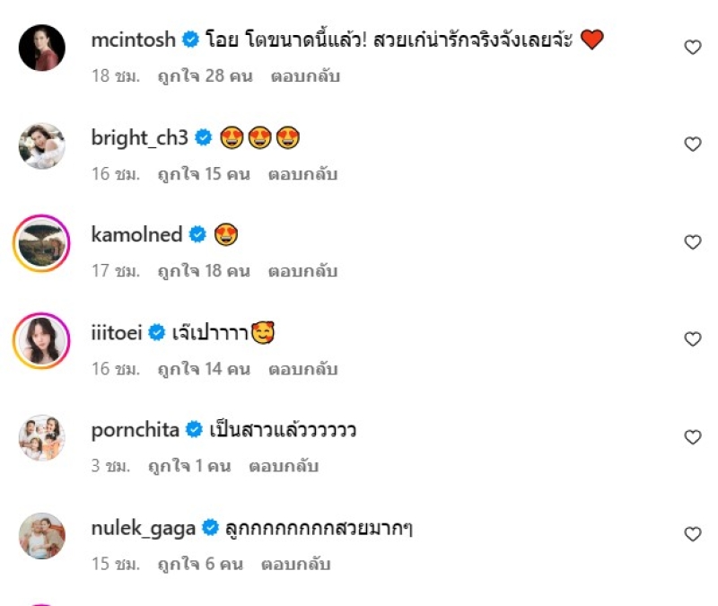 ท่ามกลาง ลุงป้าน้าอาในวงการ ก็เข้ามาคอมเมนต์สนั้นไอจี
