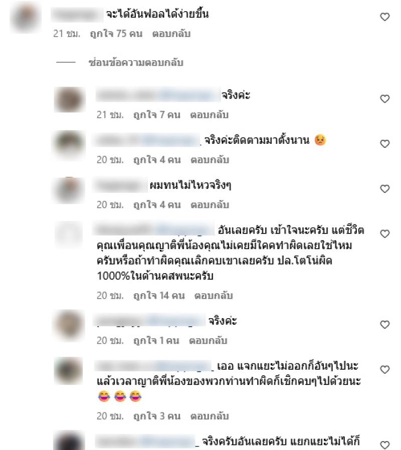 พร้อมเขียนแคปชั่นว่า มาให้กำลังใจ #เกษตรศาสตร์เอฟซี VS #เทโร นัดสุดท้ายในบ้าน..!! #นาคามรกต #ลุ้นพื้นที่เพย์ออฟ #เกษตรศาสตร์ โดยทางด้านชาวเน็ตต่างเข้ามาคอมเมนต์ขอเลิกติดตาม อาทิ จะได้อันฟอลได้ง่ายขึ้น,ผิดหวังอ่า นอย เป็นต้น