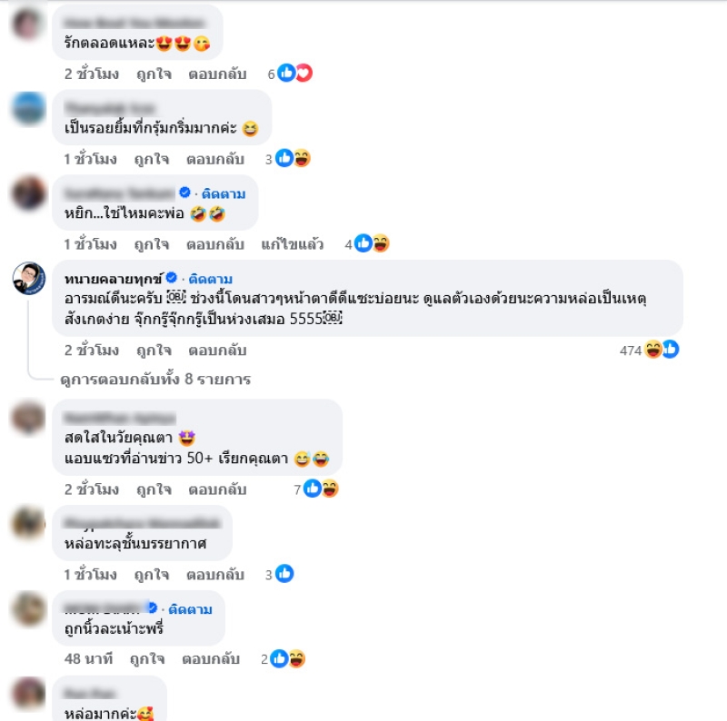 ล่าสุด หนุ่ม กรรชัย ได้ออกมาโพสต์ภาพชูมือมินิฮาร์ท พร้อมเขียนแคปชั่นว่า สำหรับอาทิตย์ที่ผ่านมา ขอบคุณที่ทุกคนซัพพอร์ตผมนะครับ ท่ามกลางแฟนๆต่างเข้ามาคอมเมนต์ส่งกำลังใจให้อย่างมาก