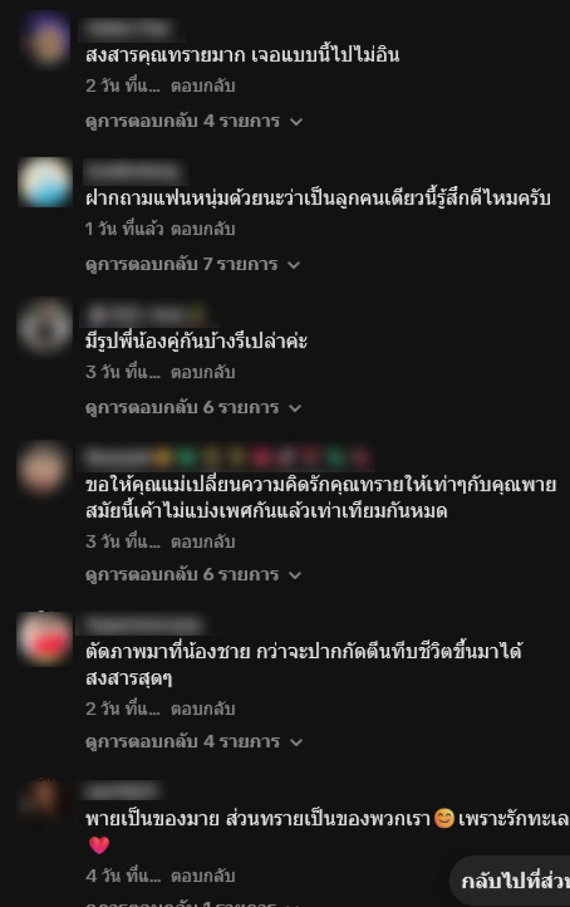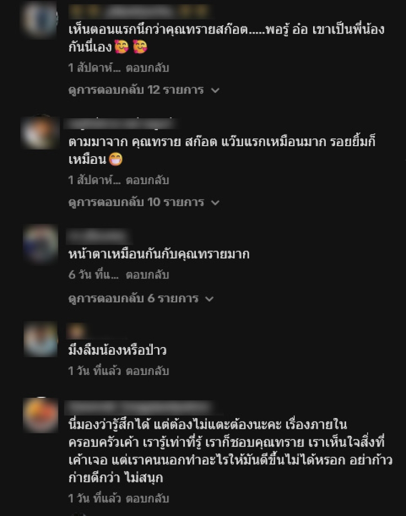 พร้อมตั้งคำถามว่าทำไมถึงใช้ชีวิตสุขสบายในขณะที่น้องชายของตัวเองตกที่นั่งลำบาก โดยในคอมเมนต์ทางช่อง TikTok ของมายด์ ต่างมีชาวเน็ตเข้ามาคอมเมนต์ว่า สงสารคุณทรายมาก เจอแบบนี้ไปไม่อิน,มีรูปพี่น้องคู่กันบ้างรึเปล่าคะ,ฝากถามแฟนหนุ่มด้วยนะว่าเป็นลูกคนเดียวนี้รู้สึกดีไหมครับ,ตัดภาพมาที่น้องชาย กว่าจะปากกัดตีนทีบชีวิตขึ้นมาได้ สงสารสุดๆ เป็นต้น