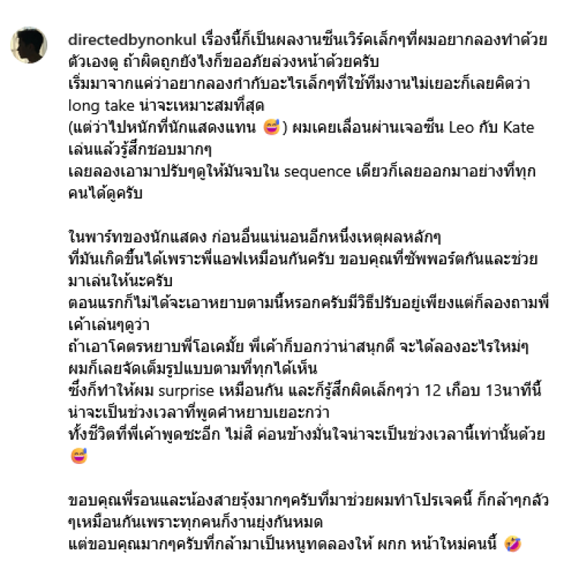 ผมเคยเลื่อนผ่านเจอซีน Leo กับ Kate เล่นแล้วรู้สึกชอบมากๆ เลยลองเอามาปรับๆดูให้มันจบใน sequence เดียวก็เลยออกมาอย่างที่ทุกคนได้ดูครับ ตอนแรกก็ไม่ได้จะเอาหยาบตามนี้หรอกครับ มีวิธีปรับอยู่เพียงแต่ก็ลองถามพี่เค้าเล่นๆดูว่า ถ้าเอาโคตรหยาบพี่โอเคมั้ย พี่เค้าก็บอกว่าน่าสนุกดี จะได้ลองอะไรใหม่ๆ ผมก็เลยจัดเต็มรูปแบบตามที่ทุกได้เห็น