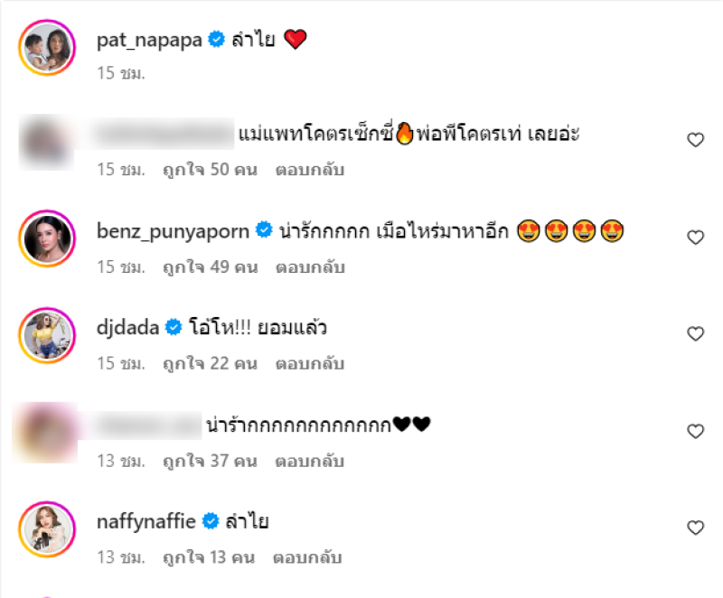 ล่าสุด แม่แพทได้เผยรูปสุดแซ่บลงอินสตาแกรม พร้อมระบุแคปชั่นสั้นๆว่า ลำไย ซึ่งเซ็ทนี้นั้นมีพ่อพีทถ่ายด้วย คุมเองเลยจ้า บอกเลยว่าแซ่บมากแม่แพท