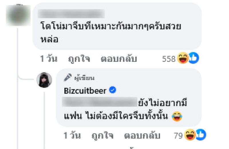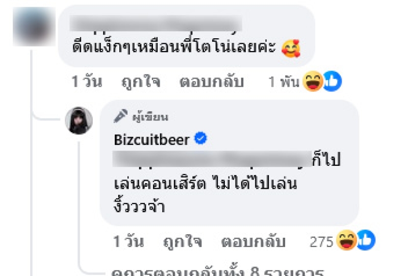 ท่ามกลางชาวเน็ตต่างเข้ามาคอมเมนต์แซวกันอย่างมาก อาทิ ดีดแง็กๆเหมือนพี่โตโน่เลยค่ะ โดยเบียร์ได้ตอบกลับว่า ก็ไปเล่นคอนเสิร์ต ไม่ได้ไปเล่นงิ้วจ้า,โตโน่มาจีบทีเหมาะกันมากๆครับสวยหล่อ ทั้งนี้เบียร์ยังเข้ามาตอบอีกว่า ยังไม่อยากมีแฟน ไม่ต้องมีใครจีบทั้งนั้น