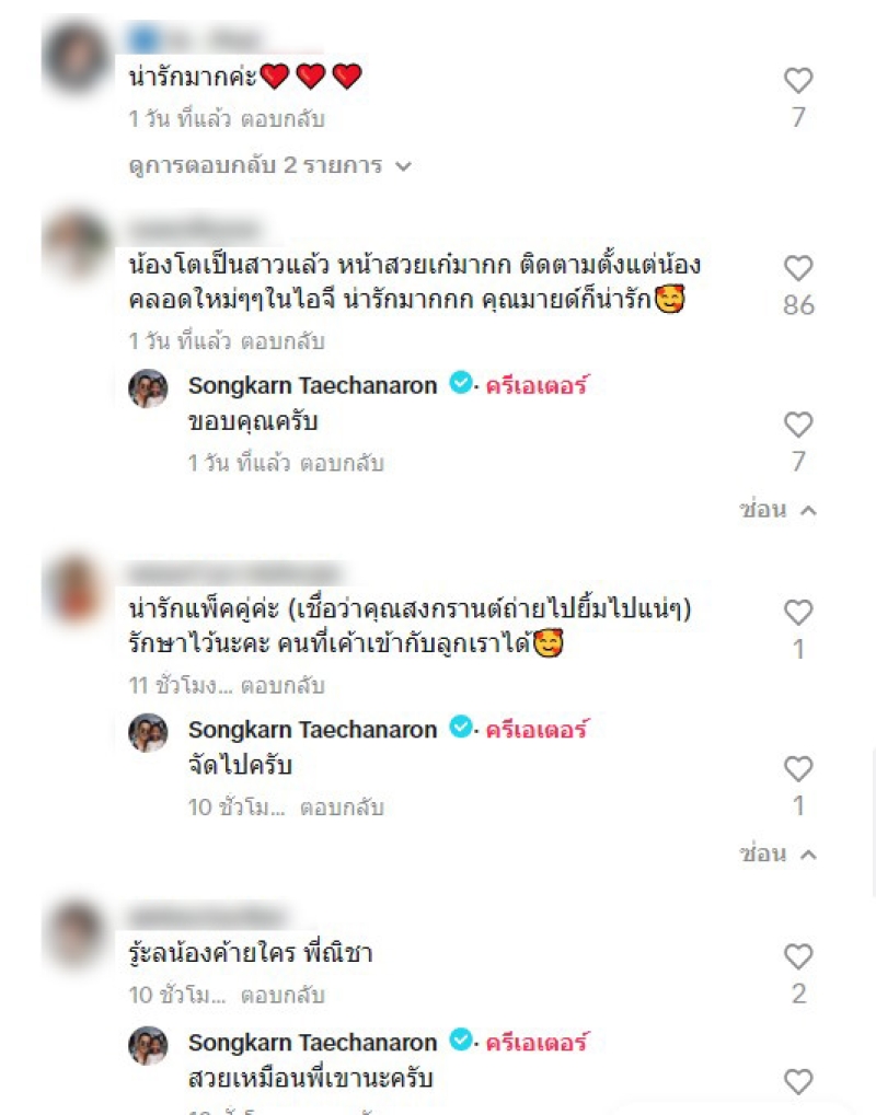 งานนี้ ทำเอาชาวเน็ตที่เห็นโมเมนต์น่ารักๆ นี้ต่างก็ต้องเข้ามาคอมเมนต์ เช่น ลุกสาวที่ถูกแม่แอฟเลี้ยงมาอย่างดี เข้ากับแฟนใหม่พ่อได้โดยไม่มีปัญหาอะไร,ฉันรักพี่แอฟกับน้องปีใหม่แต่ก่อนยอมรับอคติกับคนใหม่ของสงกรานต์แต่คนยอมรับเลยว่าไม่มีอคติใดๆเลยเห็นแบบนี้เราดีใจด้วยกับน้องปีใหม่มากๆขอบคุณที่นำความสุขกลับมาให้นางฟ้าตัวน้อยอีกครั้งนะคะคุณสงกรานต์,คนนี้ใช่เลยค่ะคุณสงกรานต์ น้องมายด์ดูเป็นเด็ก แต่รู้กาละเทศะ วางตัวดี,ดูเข้ากันได้ และน้องก็เข้าใจ ไม่ปิดกั้น,ปีใหม่และคุณน้ามายด์ น่ารักน่าเอ็นดู ขอแบบนี้บ่อยๆ นะคะ,น้องปีใหม่เป็นเด็กน่ารักเปิดใจได้อย่างน่ารักเข้าใจทุกคนเลยคุณมายก็น่ารัก เป็นต้น