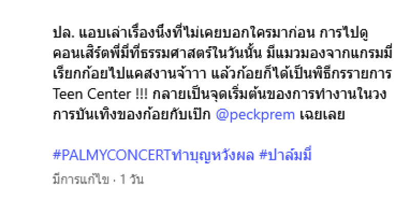 แอบเล่าเรื่องนึงที่ไม่เคยบอกใครมาก่อน การไปดูคอนเสิร์ตพี่มี่ที่ธรรมศาสตร์ในวันนั้น มีแมวมองจากแกรมมี่เรียกก้อยไปแคสงานจ้าาา แล้วก้อยก็ได้เป็นพิธีกรรายการ Teen Center !!! กลายเป็นจุดเริ่มต้นของการทำงานในวงการบันเทิงของก้อยกับเป๊ก @peckprem เฉยเลย