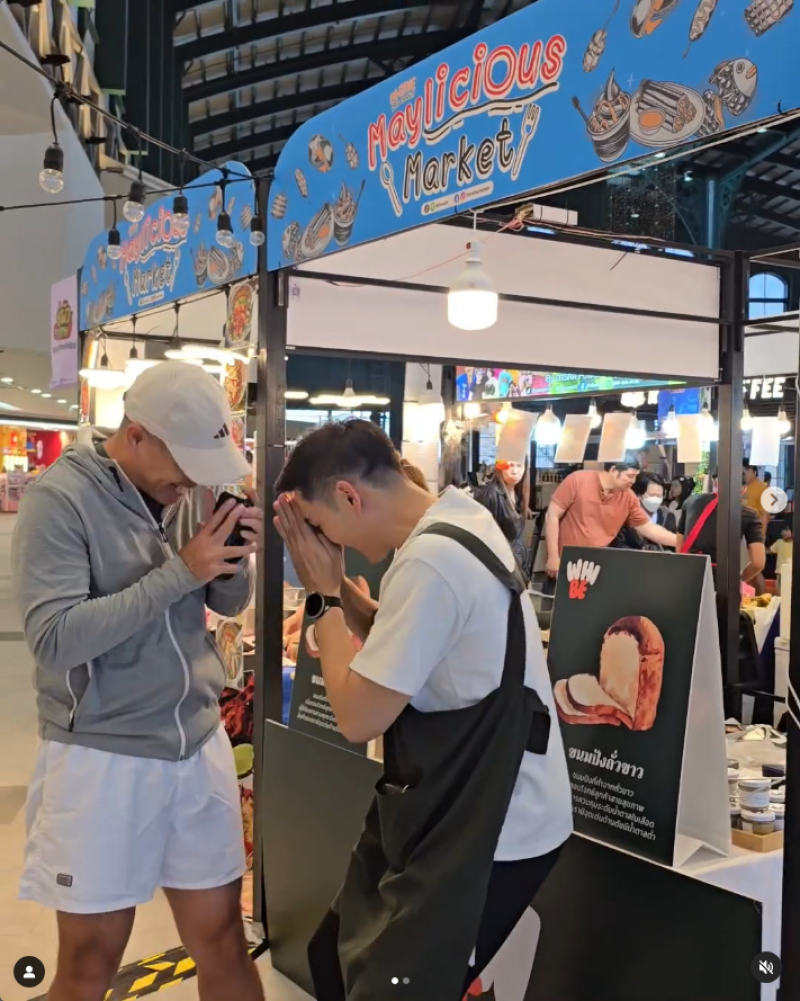 โดยเจ้าตัวโพสต์คลิป ขณะสวมกอดขอบคุณ พี่หมี สามีของนางเอกดังอย่าง แพนเค้ก เขมนิจ ที่ช่วยเหมาขนม โดย แอมป์ บอกด้วยว่า พี่หมี มาเหมา บอกว่าจะได้ปิดร้านกลับไปดูแลลูก ท่ามกลางแฟนๆต่างเข้ามาคอมเมนต์ชื่นชมกันอย่างมาก