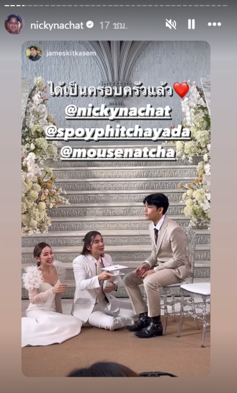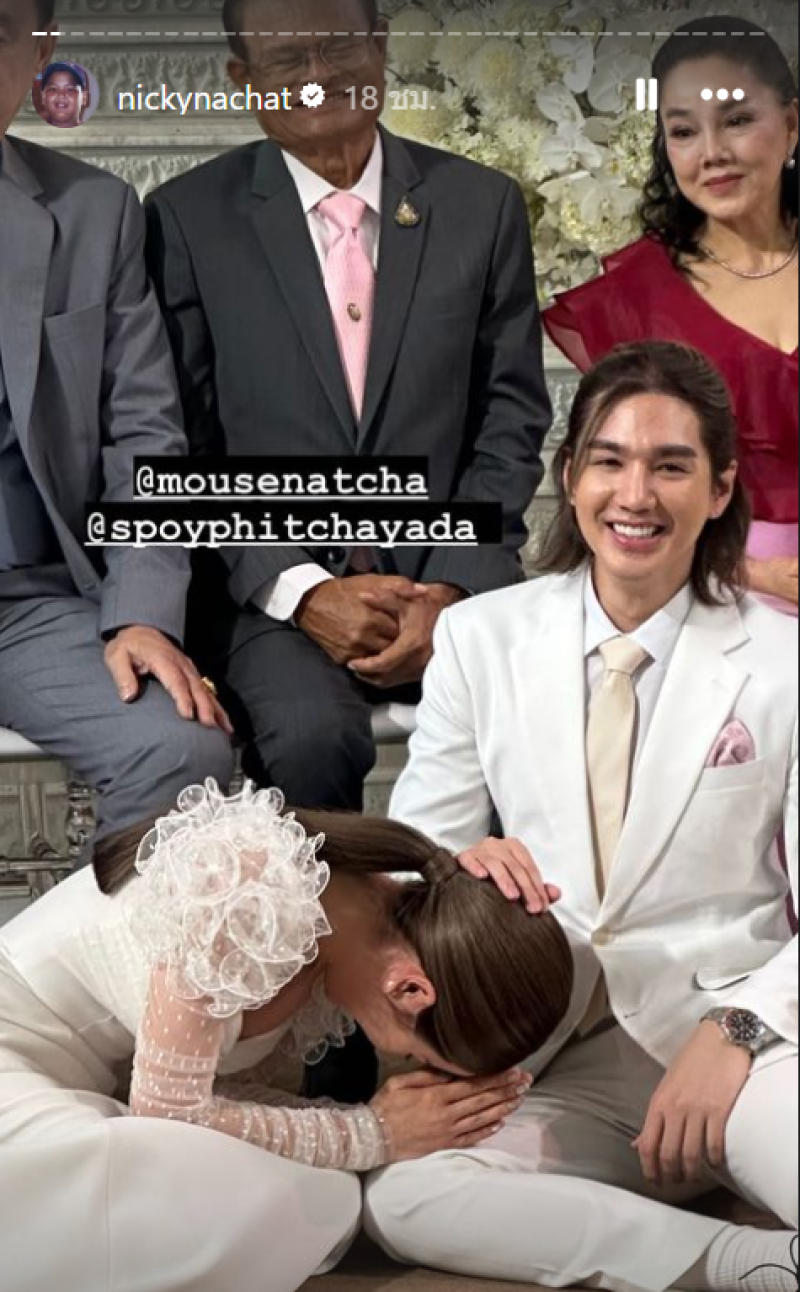 ขอแสดงความยินดี กับ เม้าส์ ณัฐชา น้องชายของ นิกกี้ ณฉัตร และแฟนสาว สปอย พิชญดา ที่ได้ควงแขนเข้าประตูวิวาห์ด้วยกันแล้ว ซึ่งก่อนหน้านั้นทางเมาส์เองก็ได้คุกเข่าขอแฟนสาวแต่งงาน ที่ญี่ปุ่นท่ามกลางอากาศหนาวๆ และล่าสุดทั้งคู่เองก็ได้เข้าพิธีเรียบร้อยแล้ว