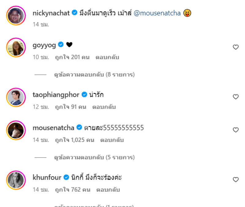 งานนี้ เม้าส์ ก็รีบเข้ามาคอมเมนต์ทันทีว่า ตายละ55555555555 เรียกความเอ็นดูจากแฟนๆสุด ด้านเหล่าคนในวงการก็เข้ามาคอมเมนต์กันจำนวนมาก และเอ็นดูพี่น้องคู่นี้ ด้าน ก้อย แฟนเก่านิกกี้เอง ก็เข้ามาคอมเมนต์เช่นกัน