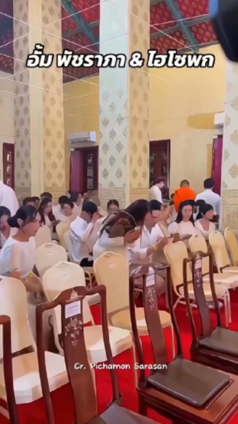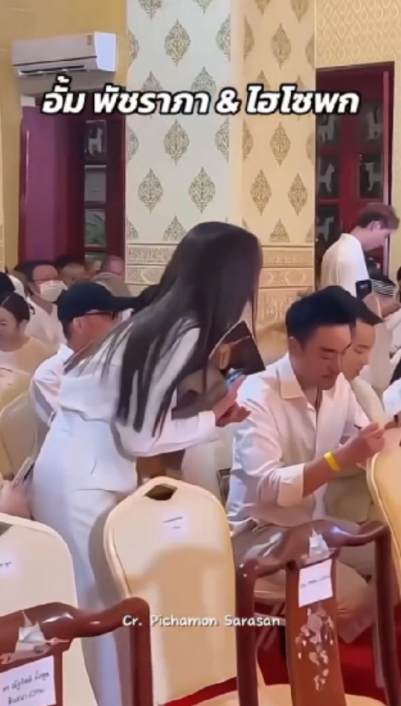 ซึ่งพิธีดังกล่าวนี้ ต่างก็มีคนดังในวงการบันเทิงมากมาย ที่พร้อมใจหลั่งไหลพากันมาร่วมงานดังกล่าวนี้เป็นจำนวนมาก ซึ่งหนึ่งในนั้น ก็คือด้านสาวอั้ม ที่นั่งอยู่ในโบสถ์เคียงข้าง ไฮโซพก ที่ยังพูดคุยยิ้มให้เหมือนปกติ ก็ต้องบอกเลยว่า ช็อตนี้ยิ่งซูมชัดๆก็ยิ่งน่ารักจริงๆ กลับมิตรภาพที่ยังคงน่ารักและอบอุ่นเหมือนเดิม เพิ่มเติมคือสายตาทั้งคู่ที่มองกันยังคงมีความเขินๆ ทำหลายคนชวนลุ้นไปตามๆกันเลยว่า หรือไม่แน่ว่าทั้งคู่อาจจะกลับมารีเทิร์นกันอีกครั้งก็เป็นไปได้