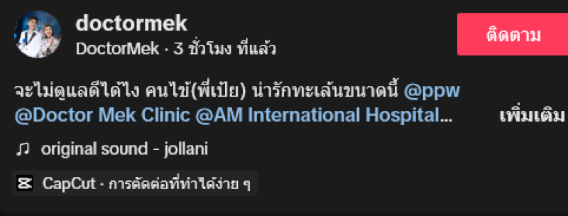 โดย หมอเมฆ ได้โพสต์ตอบกลับติดตลก ดูแลพี่เป้ยดีเกินเป็นเหตุ555 จะไม่ดูแลดีได้ไง คนไข้(พี่เป้ย) น่ารักทะเล้นขนาดนี้ พร้อมติดแฮชแท็ก #คนคลั่งรักพี่เป้ย2025