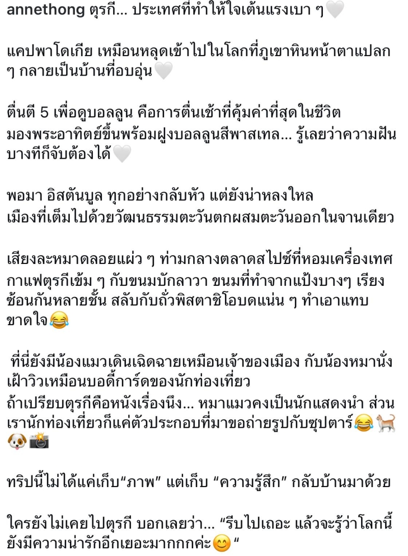 ล่าสุด สาวแอน ทองประสม ได้โพสต์ลงอินสตาแกรมส่วนตัว จากการเดินทางไปสัมผัสเสน่ห์ของประเทศตุรกี พร้อมรีวิวความประทับใจเบาๆ