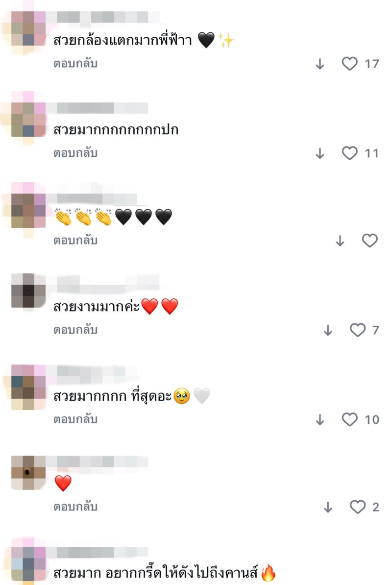 โดย มีคอมเมนต์ระบุว่า สวยกล้องแตกมากพี่ฟ้า , สวยมาก , สวยงามมากค่ะ , สวยมาก ที่สุดอ่ะ , สวยมาก อยากกรี้ดให้ดังไปถึงคานส์ เป็นต้น
