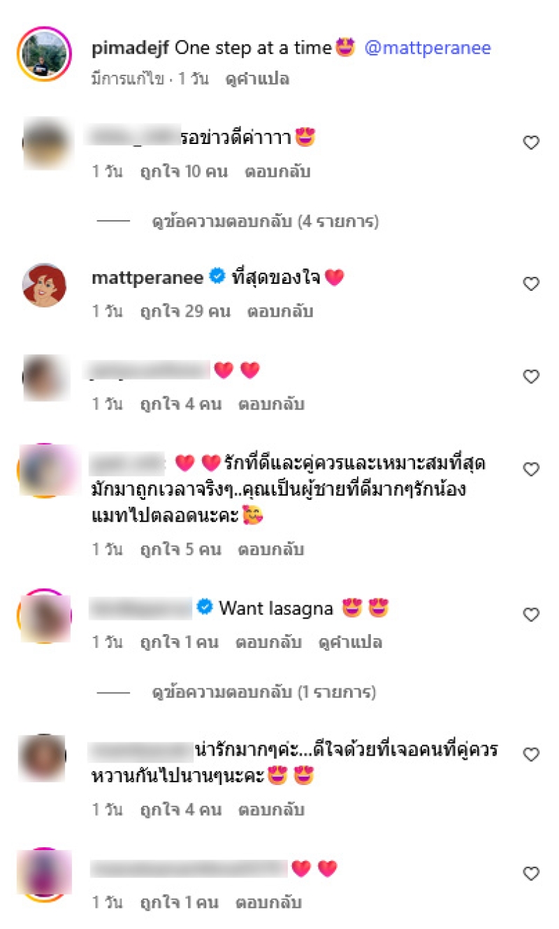 ล่าสุดทางด้าน เฟม ได้ออกมาโพสต์ภาพคู่ แมท ภีรนีย์ พร้อมแคปชั่นระบุว่า One step at a time @mattperanee ผ่านทางอินสตาแกรม pimadejf ท่ามกลางแฟนๆต่างเข้ามาคอมเมนต์ อาทิ รอข่าวดีค่า,รักที่ดีและคู่ควรและเหมาะสมที่สุดมักมาถูกเวลาจริงๆ..คุณเป็นผู้ชายที่ดีมากๆรักน้องแมทไปตลอดนะคะ เป็นต้น
