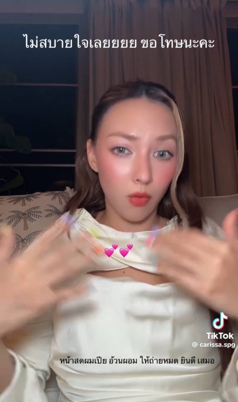 จึงทำให้ คารีสา สปริงเก็ตต์ เกิดความไม่สบายใจ กลัวพนักงานเสียใจ รู้สึกไม่ดี ตนเองจึงได้ออกมาอัดคลิปอธิบายทั้ง 2 มุม ผ่าน Tiktok ชื่อ @carissa.spg