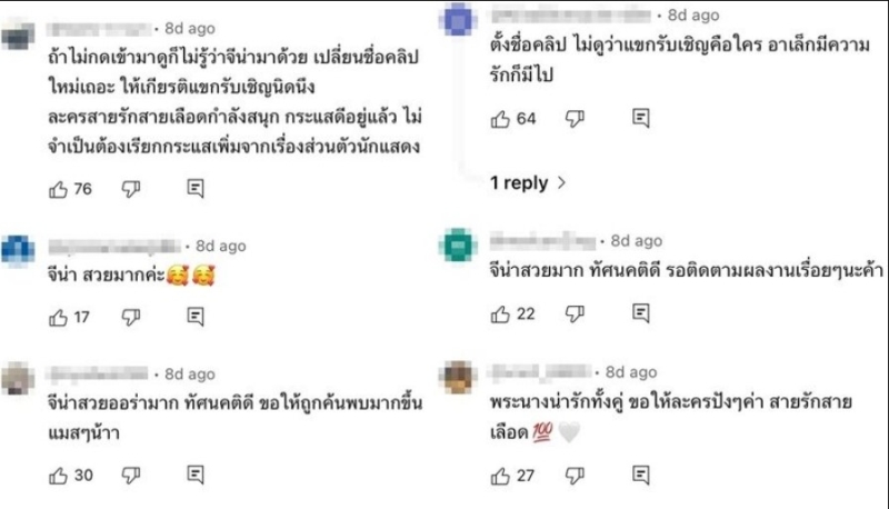 จากกรณี ที่ นางเอกสาว จีน่า ญีนา ไปออกรายการ 3แซ่บ กับ อาเล็ก ธีรเดช เพื่อโปรโมตละคร สายรักสายเลือด แต่เกิดดราม่ากับเนื้อหาการสัมภาษณ์และการพาดหัวคลิปรายการนั้น ที่มีแฟนคลับมองว่าไม่ให้เกียรตินางเอกสาว และต่างออกมาปกป้องคอมเมนต์รัวๆใต้คลิปรายการจำนวนมาก