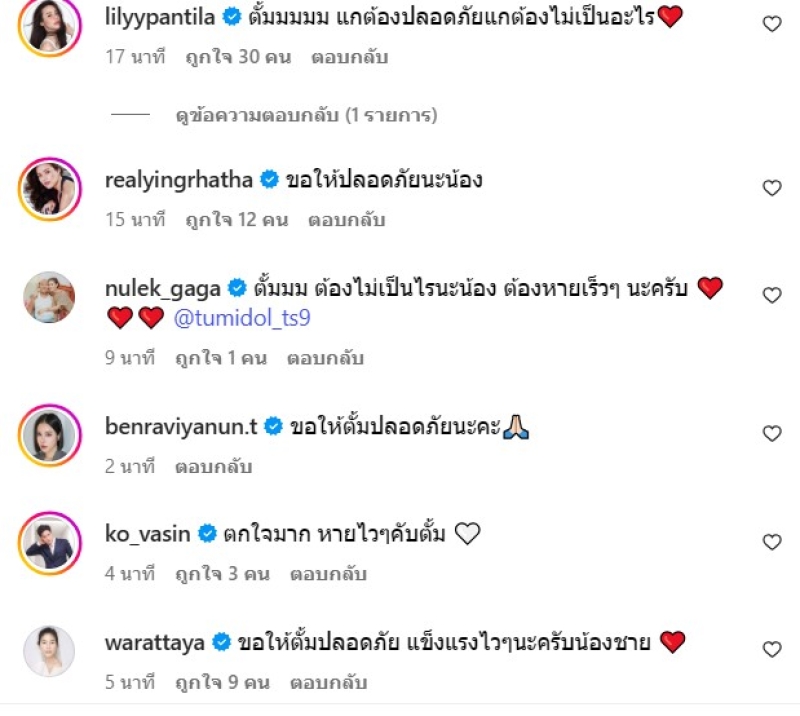 จากกรณีที่ก่อนหน้านั้น ด้านนักร้องหนุ่ม อย่าง ตั้ม วราวุธ ที่ประสบอุบัติเหตุขณะขับรถมอเตอร์ไซค์กลับบ้าน บริเวณ ถ.กรุงเทพกรีฑา 32 โดยตั้มบาดเจ็บ ปากฉีกถึงจมูก จมูกหัก เบื้องต้นนำตัวส่งโรงพยบาล ต้องรักษาห้อง ICUนั่นเอง