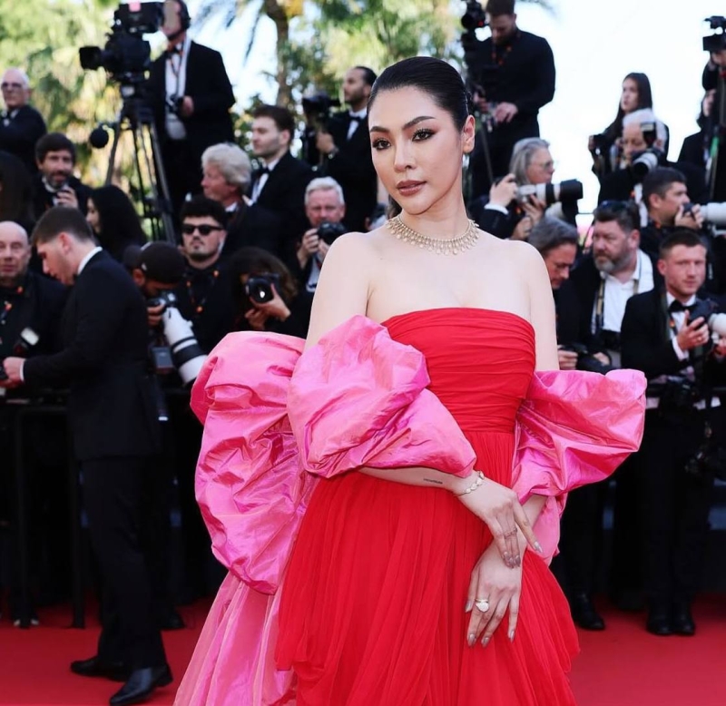โดย เธอมาพร้อมกับชุดสีแดงเด่น งานเมคอัพจัดแน่น กับอินเนอร์ที่มาเต็ม เครื่องประดับสุดหรู งานเป๊ะปังอลังการมาก
