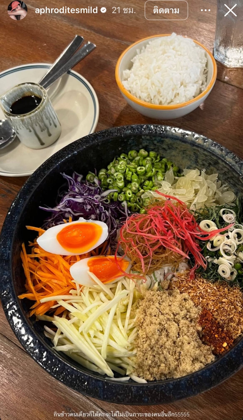 ล่าสุด มายด์ ได้ออกมาโพสต์ภาพเมนูอาหาร ลงสตอรี่ในอินสตาแกรมส่วนตัว